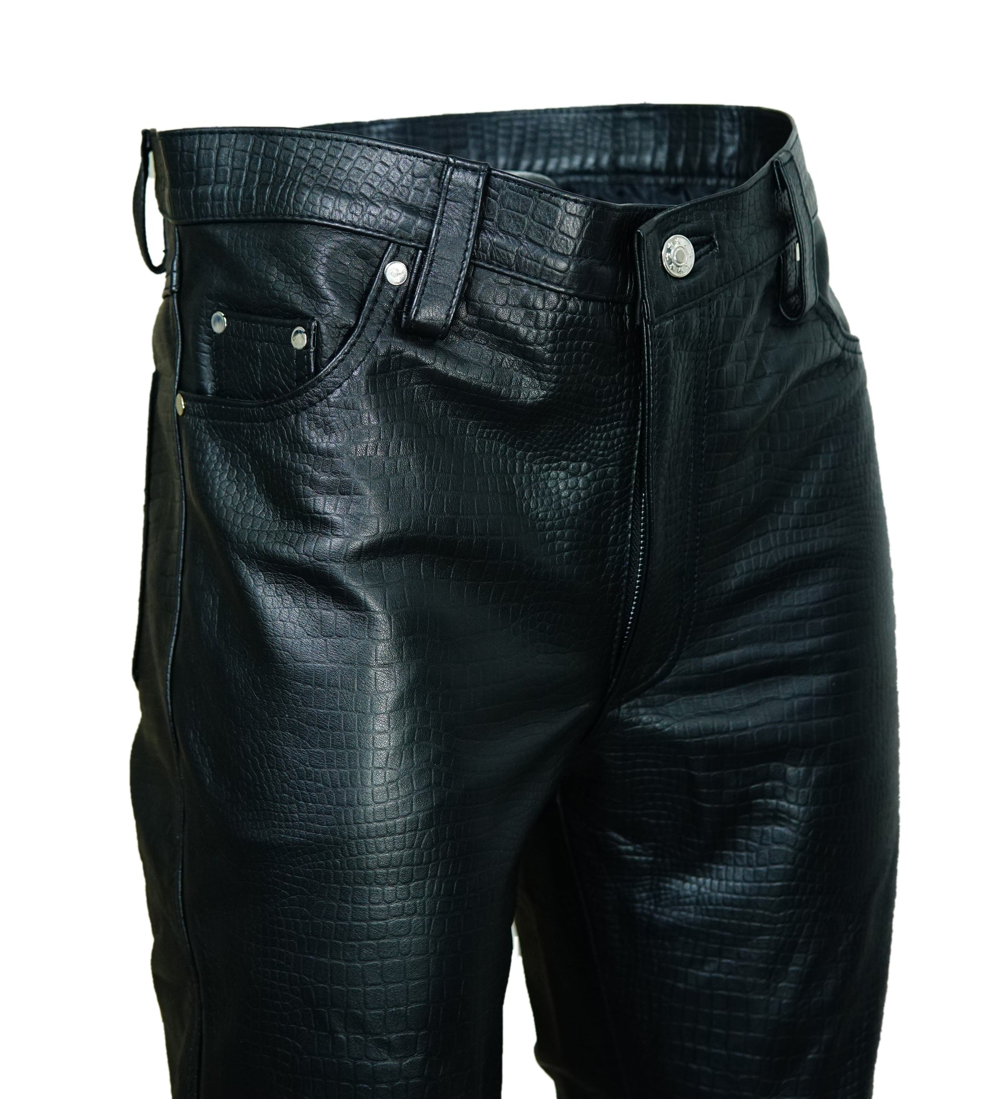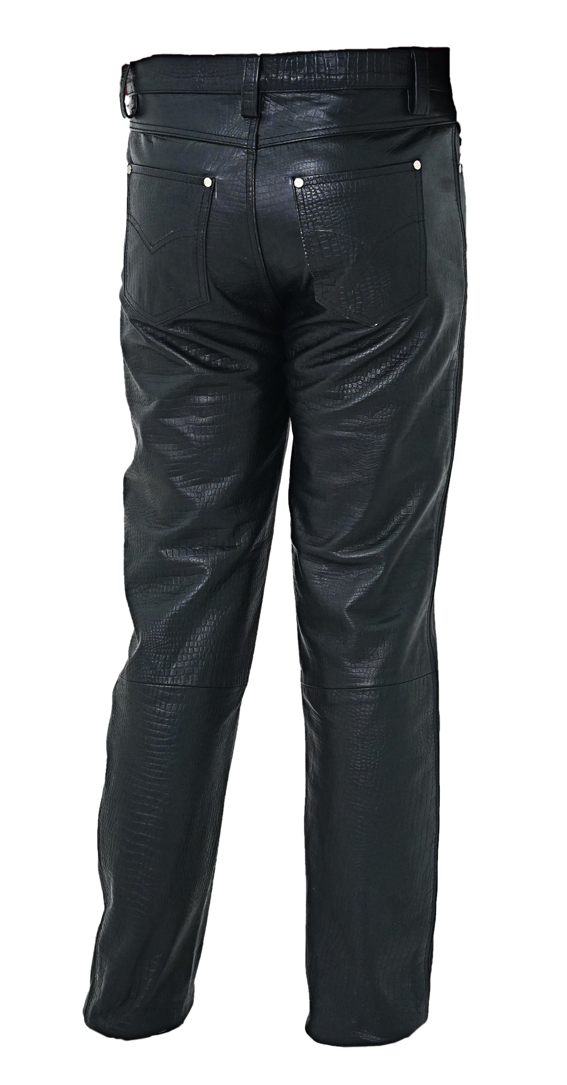 Men's Crocodile Print Cowhide Leather Biker Pants – 5 Pocket Style