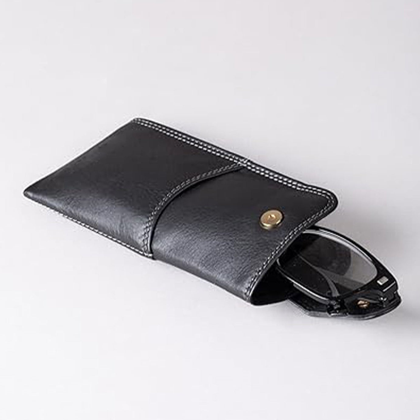 Slim Genuine Black Leather Glasses Case – Magnetic Eyewear Pouch for Reading Glasses & Sunglasses