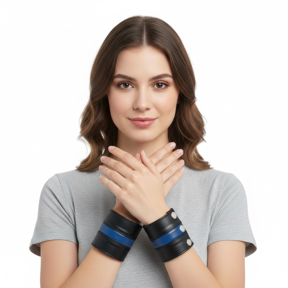 BDSM Leather Handcuffs – Black & Blue Bondage Restraints for Master Slave Play